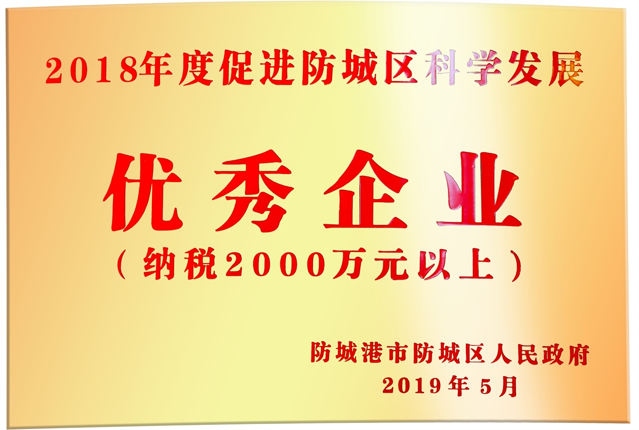 2018年度促進防城區(qū)科學(xué)發(fā)展優(yōu)秀企業(yè)