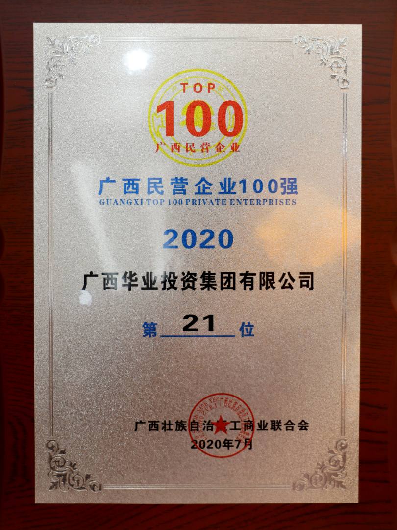 2020廣西民營企業(yè)100強第21名